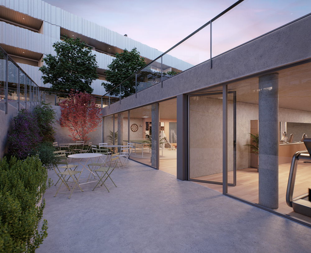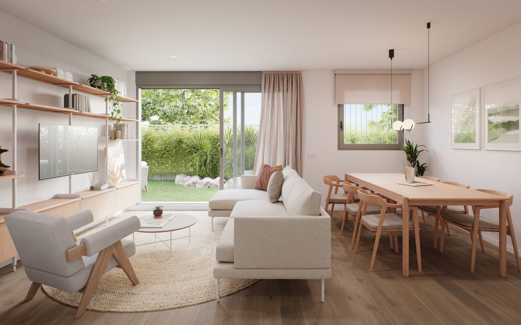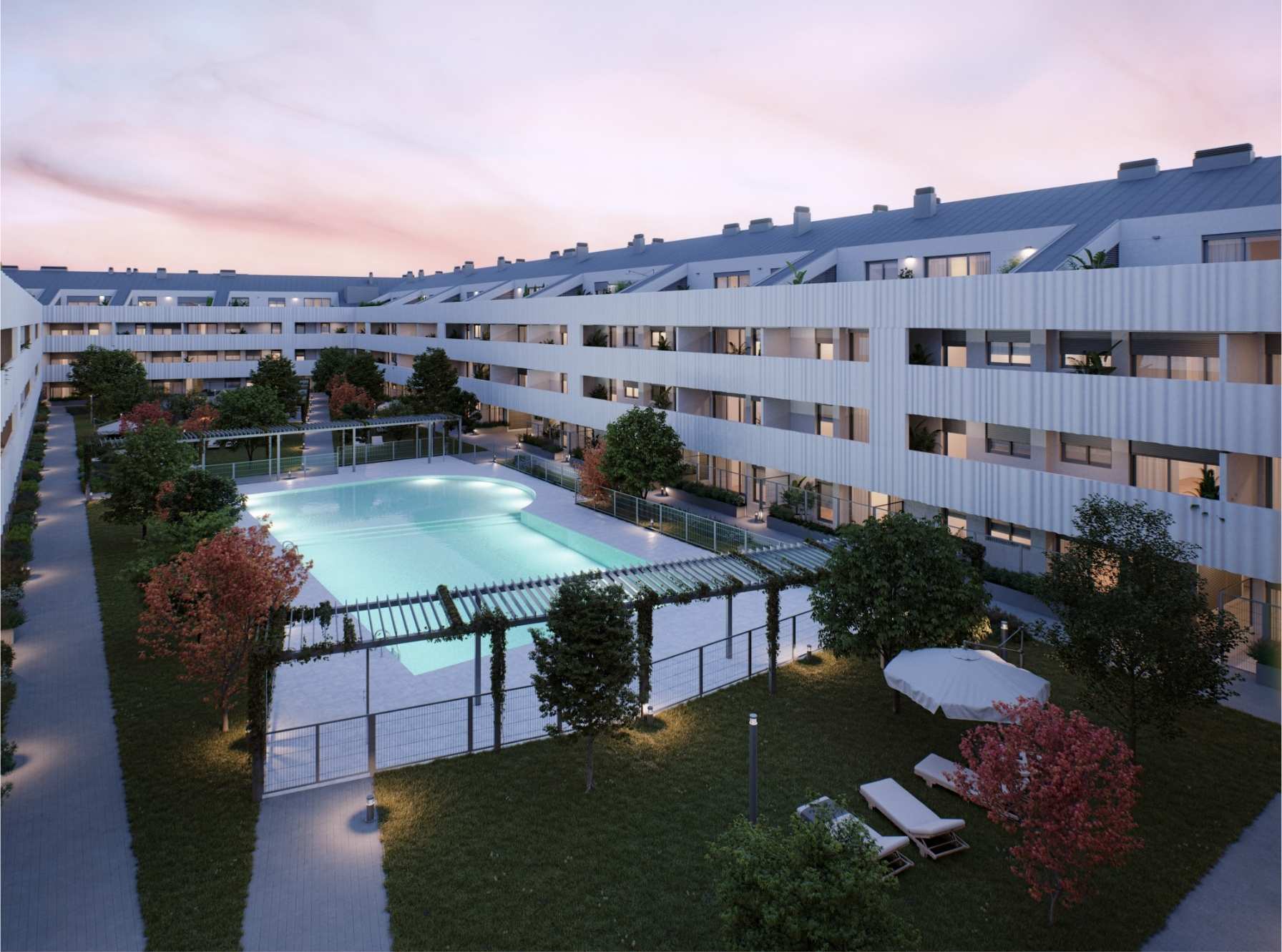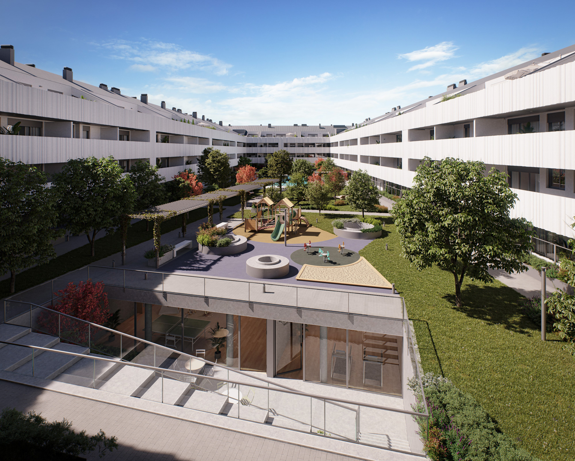 Viviendas en altura con amplias terrazas y zonas comunes con piscina