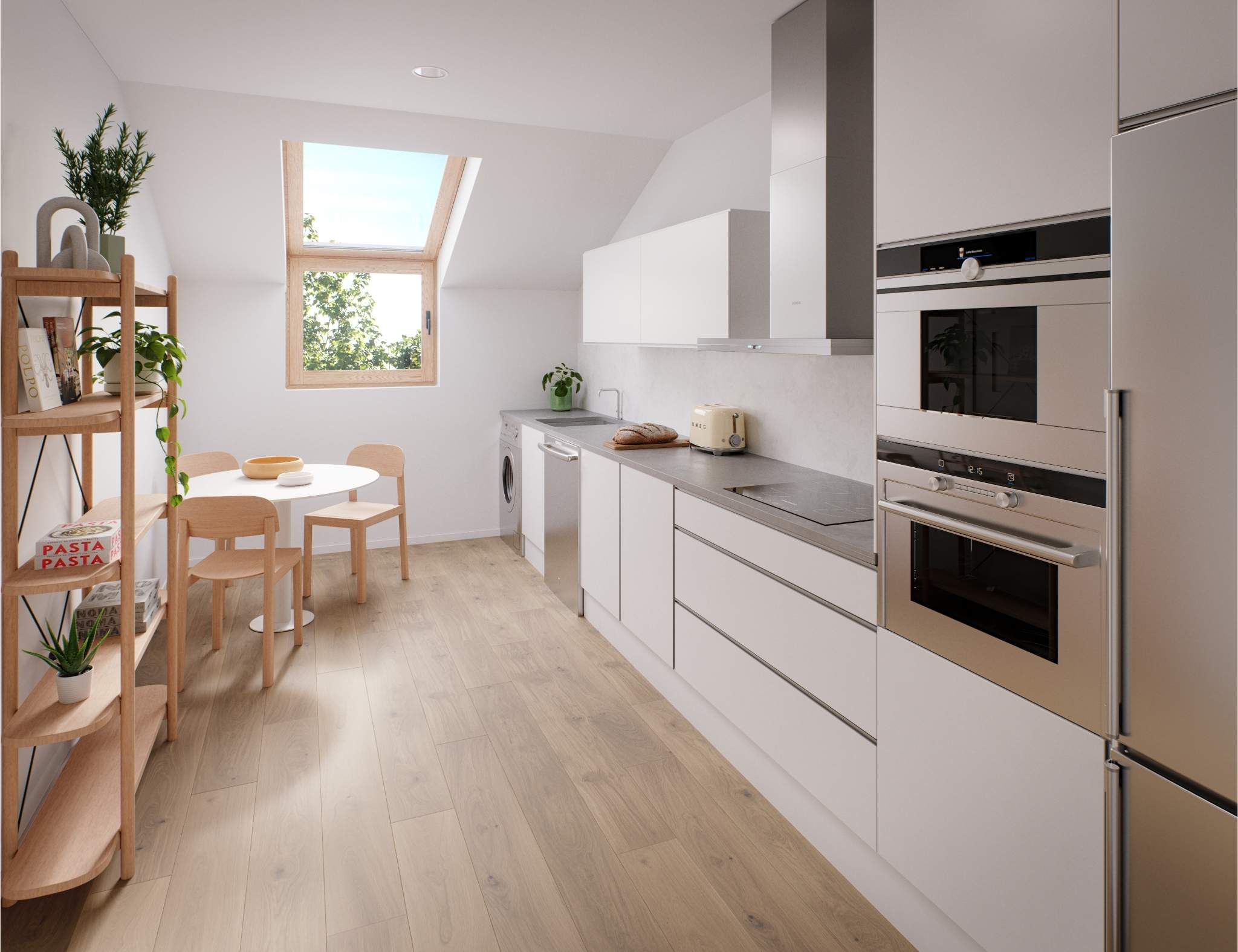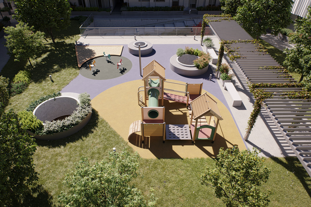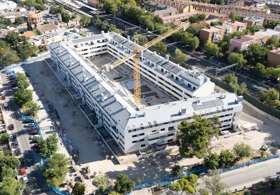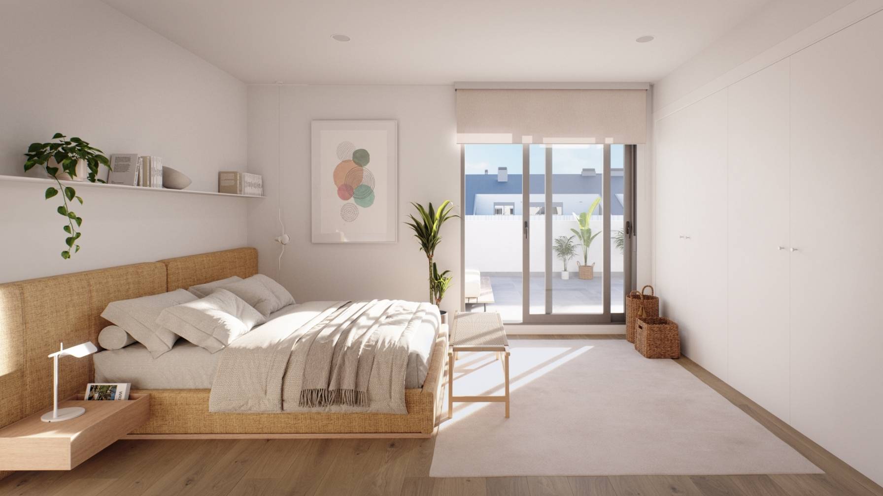 Viviendas en altura con amplias terrazas y zonas comunes con piscina