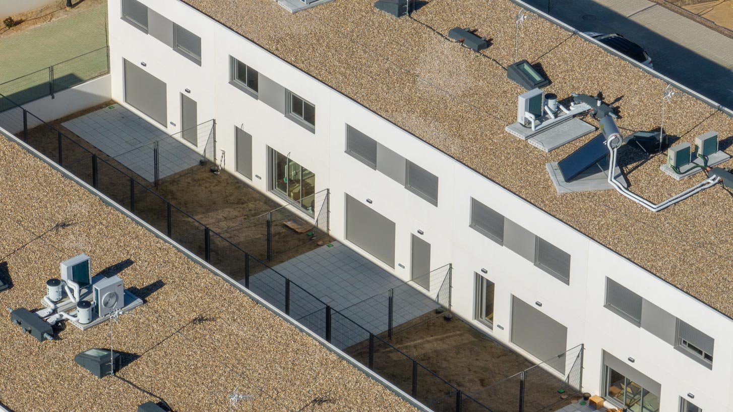 En línea con el planteamiento general del desarrollo, se han incorporado sistemas de aerotermia como solución eficiente para la climatización y el agua caliente sanitaria, contribuyendo a un consumo energético más responsable y a un mayor confort térmico.